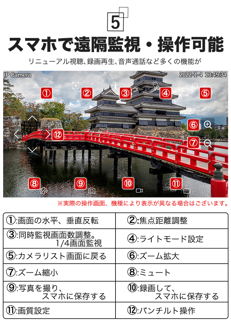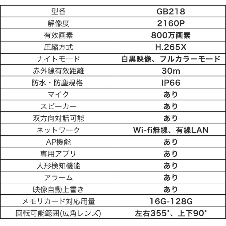 下記仕様の高機能防犯カメラを開発・販売を致します。