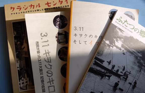 2010年、昭和30~50年の写真をまとめた「クラシカルセンダイ」、2012年、市民が撮った震災記録「3.11キヲクのキロク」、2013年、震災のその後の変化を定点撮影した「3.11キヲクのキロク、そしてイマ。」、2014年、震災でふるさとを失った地域の方々の声を記した「ふたつの郷」の、企画、編集をさせていただきました。これらは震災前、または震災後の仙台市民の営みを後世に伝えること、そして世代間・地域間の交流に役立ててもらうことを目的に本という形でまとめてまいりました。(「ふたつの郷」は六郷・七郷コミネット様発行、以外はNPO法人20世紀アーカイブ仙台発行)