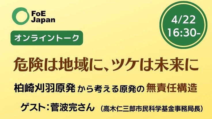 今回のトークでは、ゲストに高木仁三郎市民科学基金事務局長の菅波完さんをお迎えし、こうした問題について考えていきたいと思います。ぜひ奮ってご参加ください。