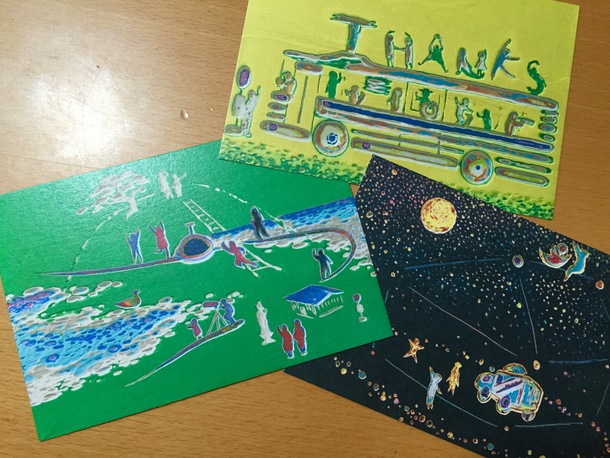 ご支援に感謝の気持ちを込めて、美術作家・偽バス停制作者の佐竹真紀子さん作「オリジナル・サンクスカード」(※画像はイメージです)