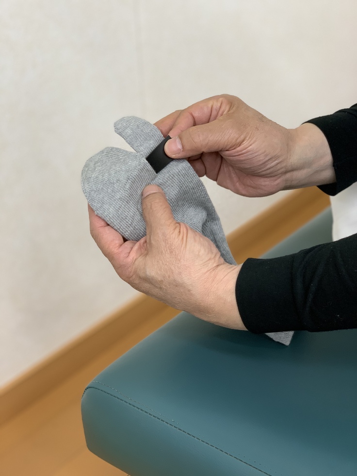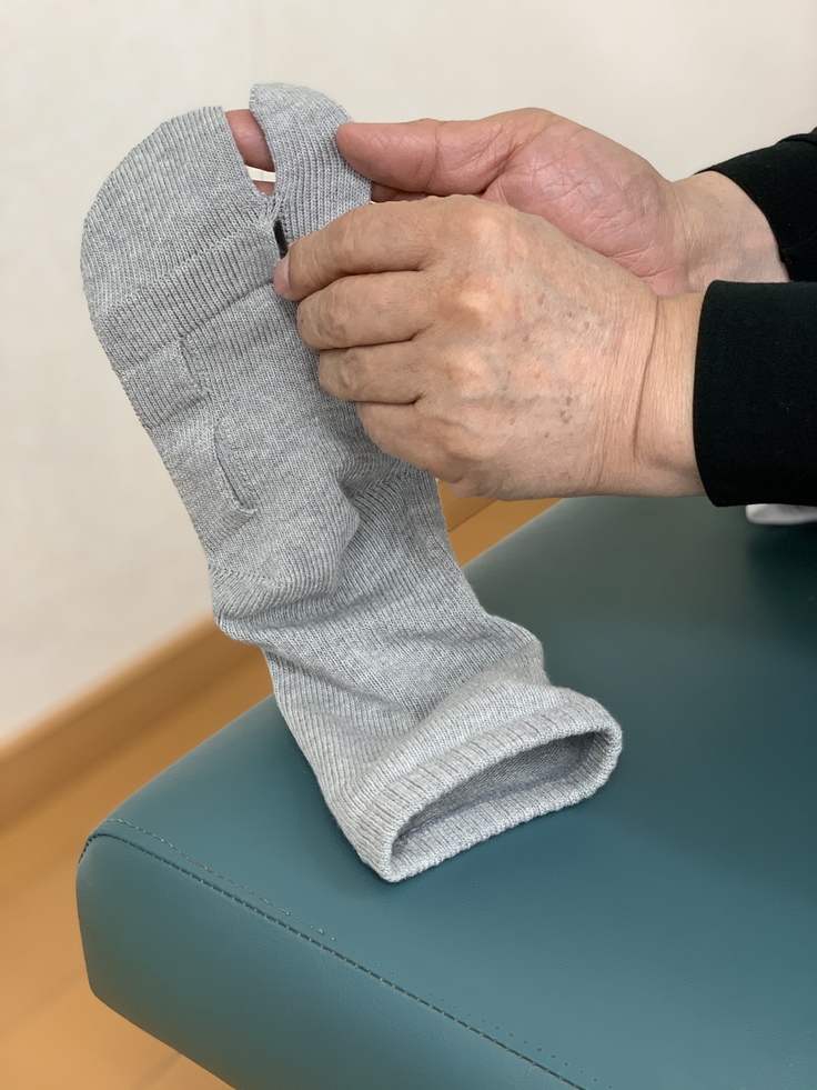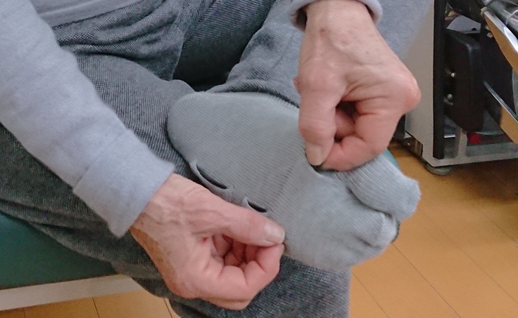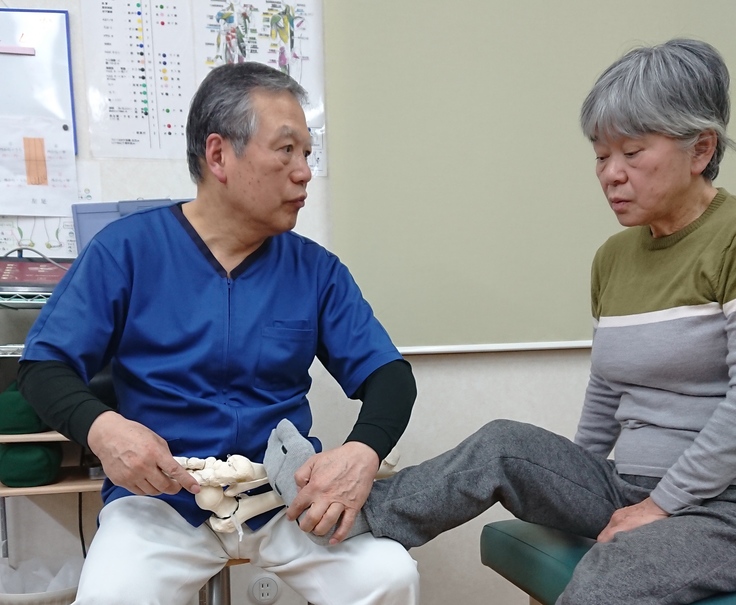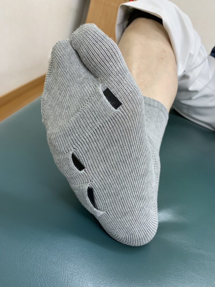 靴下に注目したのは、ある来院者の方がきっかけでした。その方は膝の調子が悪いとのことで、膝周辺の施術をしてお帰りになったのですが、遠方にお住まいだったため通院の間隔が空いてしまい、次回来院されたときには症状がもとに戻ってしまっていました。