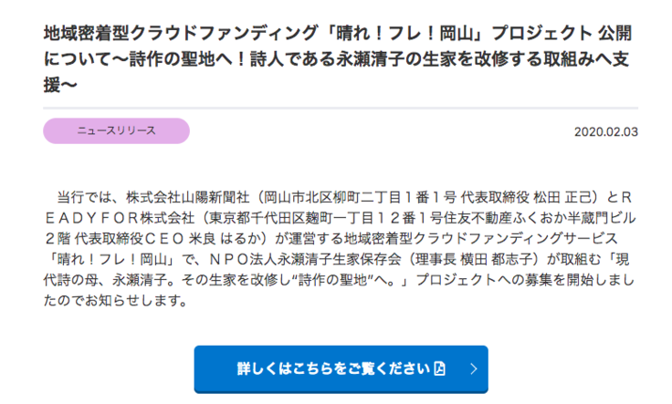 2月3日に中国銀行ホームページ「 ニュースリリース 」に掲載していただきました。