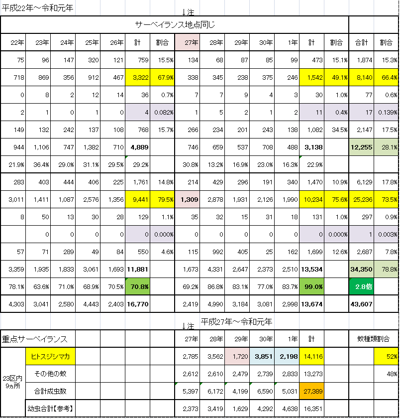 東京都は2014年に代々木公園を起点としたデング熱の拡散が有りましたが、媒介蚊はヒトスジシマカでした。2016年のジカ熱の世界的流行の媒介蚊もヒトスジシマカであり、拡散を体験した日本としては2014のデング熱を教訓として2016年の宣言を重く受け止め、当時から発生源を減らす取り組みを強化するべきでした。危機意識の欠如なのか?対岸の火事に感じたのか対応策は同じで、東京都のサーベイランスの結果から23区のヒトスジシマカの個体数は一定数を維持している事が観測されているからです。やるべき対策をやらなかった事が原因と言われない様に至急改善すべきです。