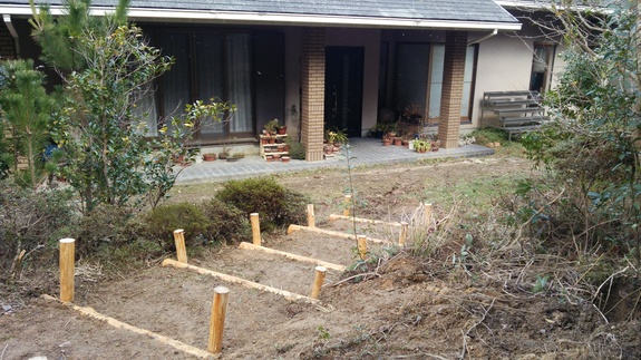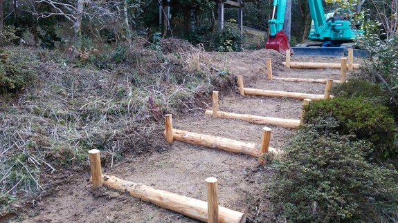 2月7日のおとしだまの森倶楽部&日本森林ボランティア協会の作業日に、カフェへの階段を作って頂きました!