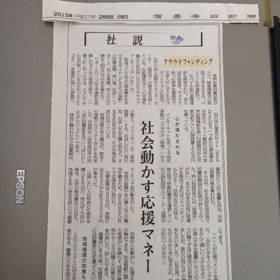 <信濃毎日新聞2/8朝刊の 社説でも取り上げていただきました>