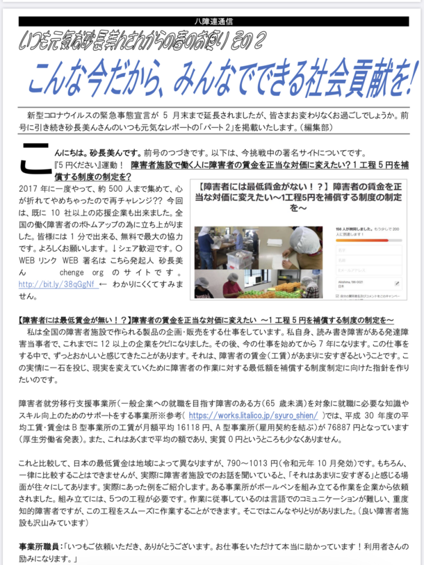 八王子障害者連合会のニュースレターに掲載いただきました。