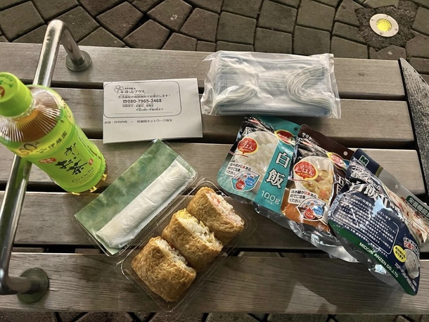 計8名の方に写真の手作りいなり寿司、非常食、マスクなどをお渡ししてきました。