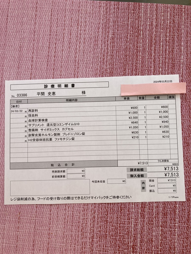 一週間後の診察で数値が安定していたら、ステロイドを1/2に減らせるかもしれないとのことでした。
