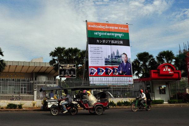 歌丸師匠をはじめ、落語芸術協会のみなさんのカンボジア公演は、街頭広告で大々的に告知され、プノンペン市内の小学校や劇場で開催されました。