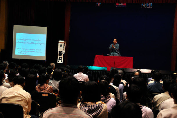 現地の子どもたちと両親、カンボジア在住の日本人や外国人などを対象に、2日間で計三席の落語会が開かれました。