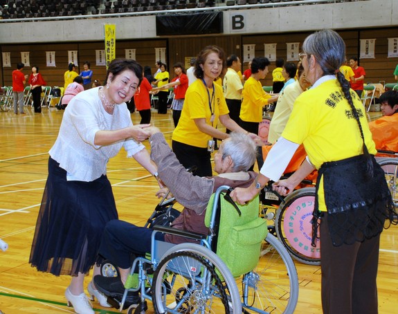 車椅子レクダンスとは、車椅子使用者も高齢者も健常者と同じようにレクダンスを楽しむ、福祉スポーツ・レクリエーションの一種です。健常者と車椅子使用者が手をつないで踊ります。競技ではなく、誰でも楽しめます。車椅子も一般の介護用の車椅子で踊ります。相手の体温から優しさや心を感じ生きている喜びを感じます。