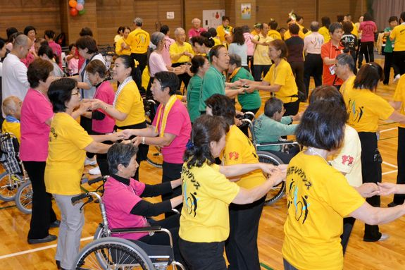 9月19日(土)10時~15時、長野県泰阜村体育館で開催します。健常者と車椅子の人の割合は10対1程度です。遠方から参加する車椅子の人は20名程度ですが、地元の車椅子の人および高齢者や、子供さん(今回は泰阜村中学校の皆さんが参加します)と交流します。地域の概念を超え誰とでも関われるダンスを繰り広げます。