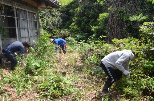 曽田文庫の分館予定地の一つ、奥出雲町高田地区の古民家で、草刈りワークショップをしました!