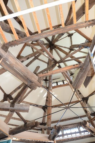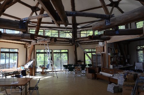 すべて構造計算も行われているそうです。コイの養殖をされる民間の方が、将来、宿泊や、人々の集まりなどに使う目的で建設されたそうで、村一番の大工さんが、悪戦苦闘しながら、仕上げたそうです。