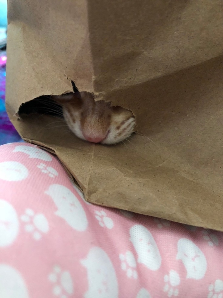 紙袋も大好きで遊んでるうちに鋭い爪と歯で穴を開け