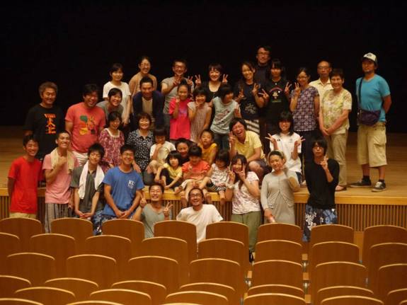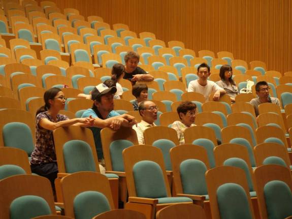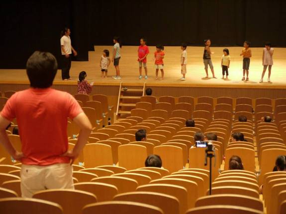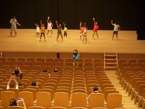 南相馬組は、大きなホールのステージを借りて練習しました。