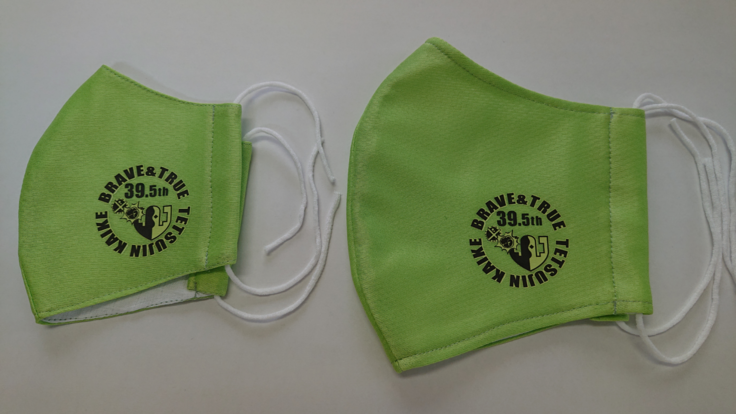 39.5回皆生大会記念手作り鉄人皆生マスクです。鉄人がコロナをやっつけているデザイン。