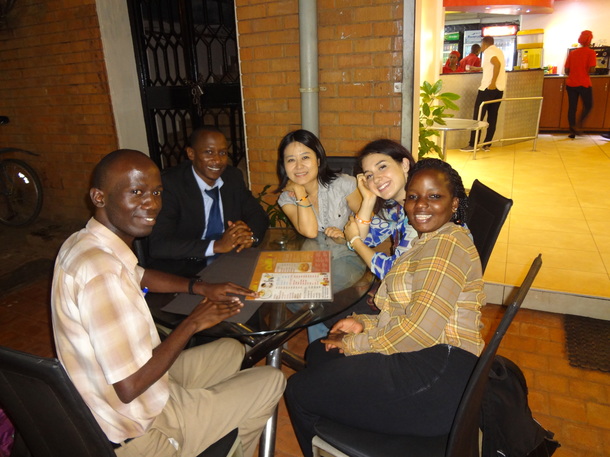 2015年2月、私がウガンダに到着して1~2週間ほど経った頃、たまたま行ったカフェで偶然にも再会したのです。フランシスを見かけた私は「見たことのある人がいる」と思いながらも、すぐにフランシスとは思い出せず、彼もまさか私がウガンダにいるとは想像もしておらず、気が付いたときはお互いに驚きと感動(?)でした。