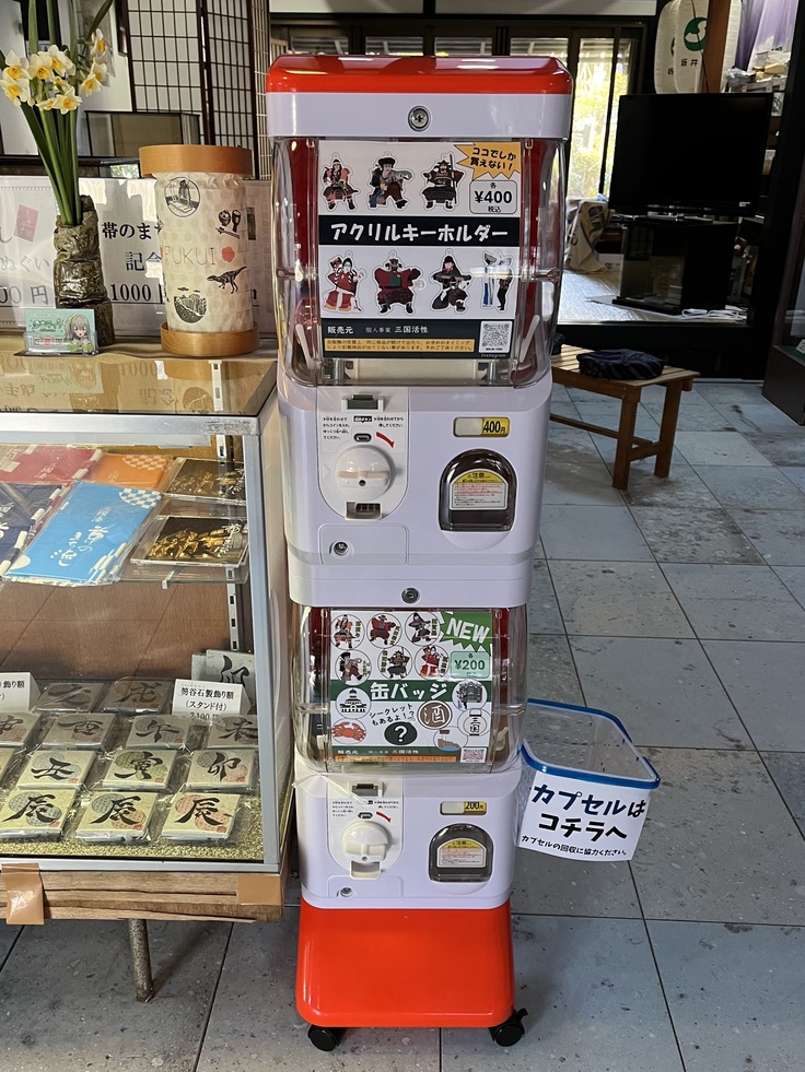 また、子どもたちにも楽しみながら三国にふれてもらえるように、ガチャマシーンを活用します。