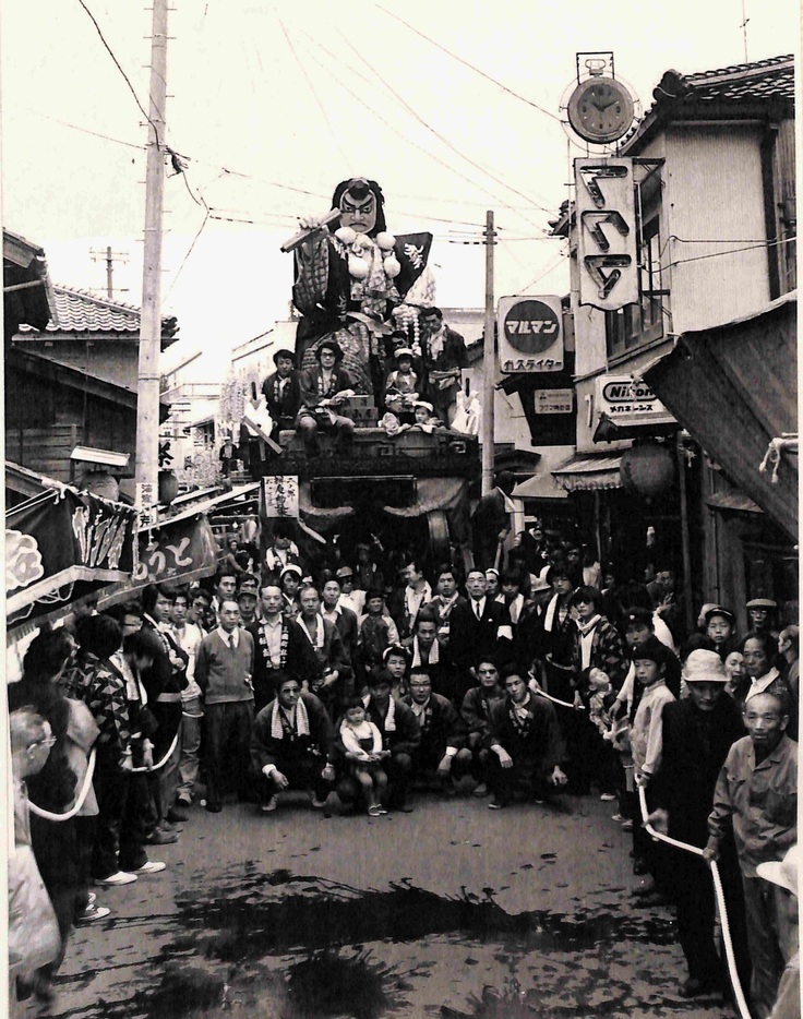 松ケ下区の山車の写真としては、最後の白黒写真です。この後の昭和51年からはカラー写真となります。時代の変化を伺うことのできる貴重な1枚です。(正面に移っている子供は、2歳のころの私です。)