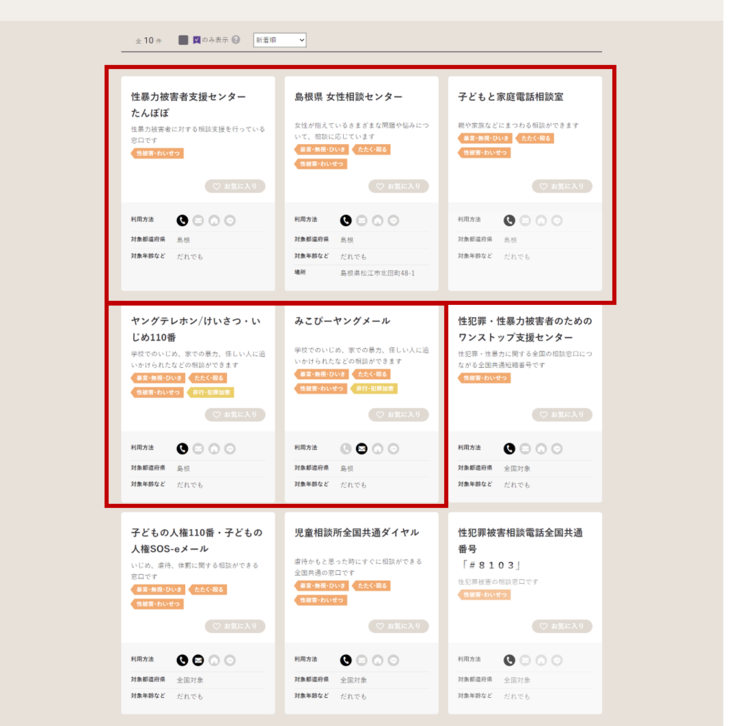 窓口を増やす上で、ただ掲載するだけでなく、子どもたちでもわかりやすいように情報を編集したり(※著作権法の範囲内)、HP上で情報が足りない場合は調査等を行ったりして、子どもたちがなるべく相談のハードルを感じないような工夫をしております。現在もまだ掲載作業は続いています。
