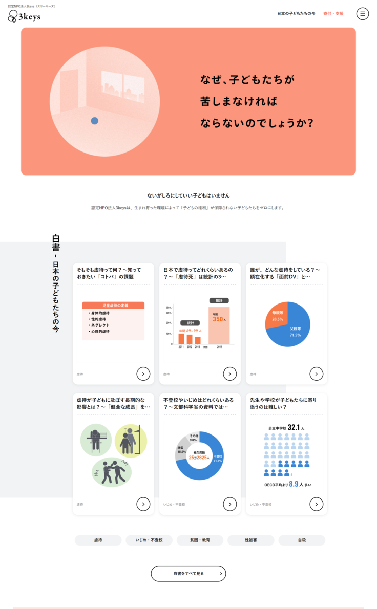 ③2021年5月には3keysの公式HPをリニューアルし、子どもたちの現状を正しく啓発する「白書ー日本の子どもたちの今」を開始