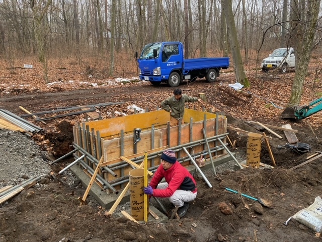 こちらの小屋にトイレとシャワルーム、流し台、洗濯機を設置予定です。