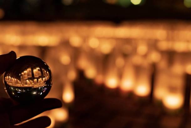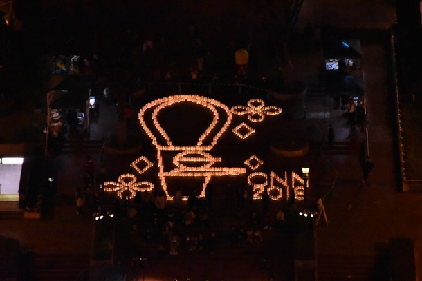 来場者に小さなキャンドルに火を灯してもらい1枚の巨大キャンドルアートを完成させてもらうことがメイン企画です。