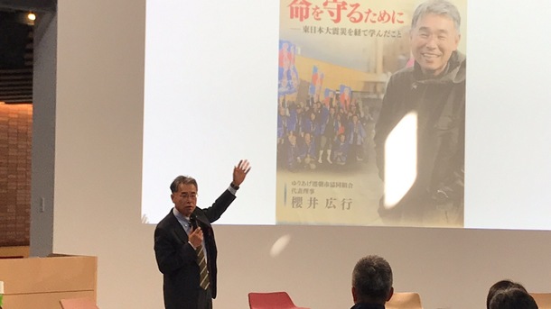午前中は櫻井広行氏に宮城県名取市閖上地区で被災された経験についてご講話いただき,震災のリアリティや今後の災害に向けての心構えなどをご教示いただきました。