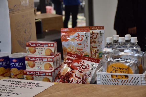 昼休憩の時間では「株式会社眞照」による非常食販売+お湯の提供や,福島県浪江町の新米コシヒカリを用いたカレーライスを「マイルポスト」と「きっかけ食堂名古屋」という学生団体同士のコラボメニューとして提供いたしました。