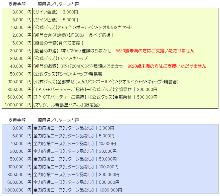 (→まずはクラウドファンディングで資金を調達し、それ以外にも地元企業からスポンサーを募る予定です) - 現時点では能登地方での練習場所が確保できない。
