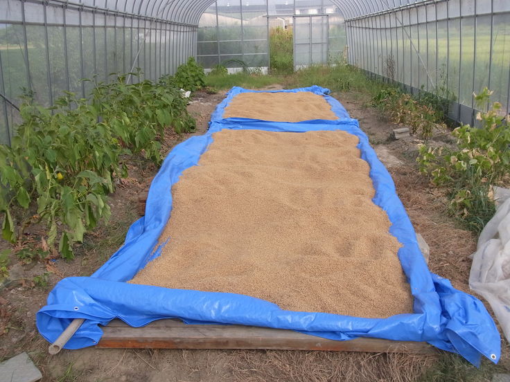 コシヒカリのモミ乾燥(ハウス内天日乾燥)