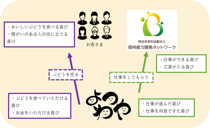 今回は、よつわやのぶどうが繋ぐ喜びの流れです。私のイメージを紹介します。