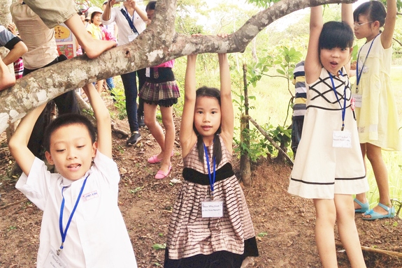 (現地の子どもたち、木があったら登る!ぶら下がる!果物かじる!)
