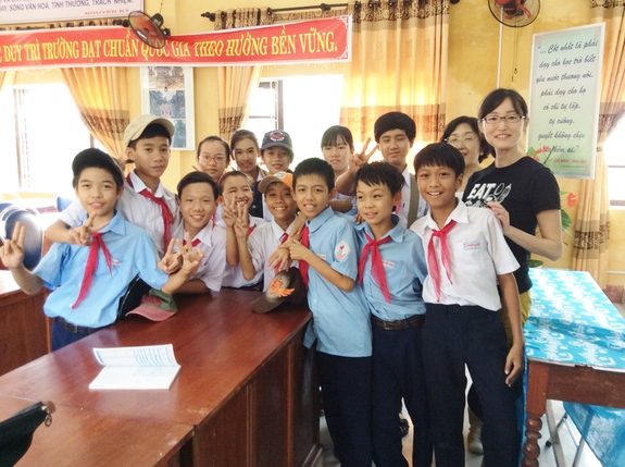ちょうど東京スタッフの関口が出張でフエに来ていたので、活動の導入の説明をしてもらいました(写真右の黒Tシャツ)。