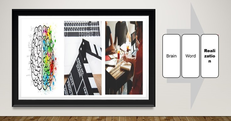 投稿者(Brain脳・アイディア)→YouTuber・作家・脚本家などに(Word・文字で伝え)→作品→完成(Realization・実現させる)