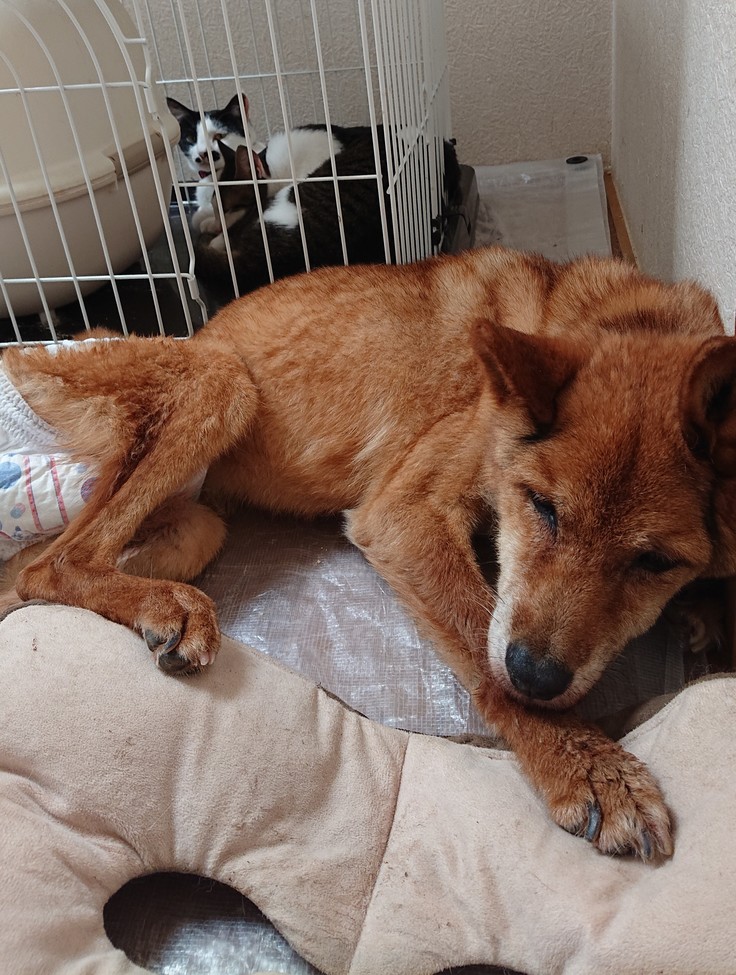 ただ、同時に老犬の具合が悪くなってしまい、あまり環境としては良くないのですが保護猫と同じ室内で看護をしております。