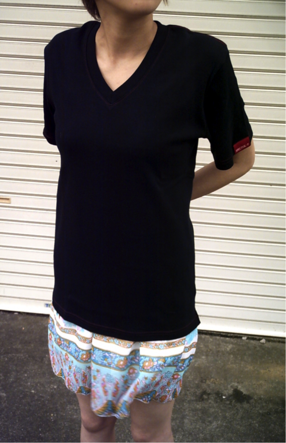 (宝石の糸で製造した半袖肌着。普段着にも問題無くご使用いただけます。)