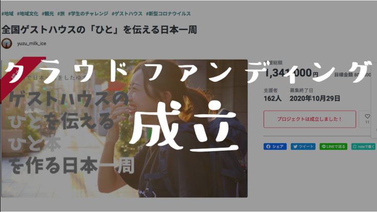 学生で、ここまでの大きなお金や人の心を動かす、というプロジェクトを開始し、不安でしかなかった私を激励してくれた友人各位、心から旅を支えてくれて、ぜひ来て欲しいと言ってくれたゲストハウスの皆様、シェア、ご支援をしてくださった皆様、両親、本当にありがとうございます。皆様のおかげで私の夢は現在進行形で実現できています。