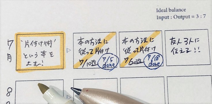 マスの横に〇月と入れたり、アウトプットした日を入れるのもおすすめです。