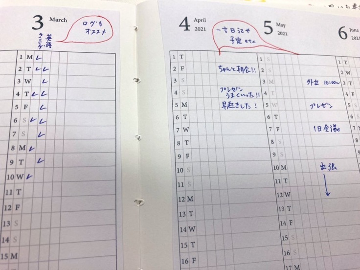 他にも書きやすい、と言って頂けたのが3か月(見開き6か月)のページ。