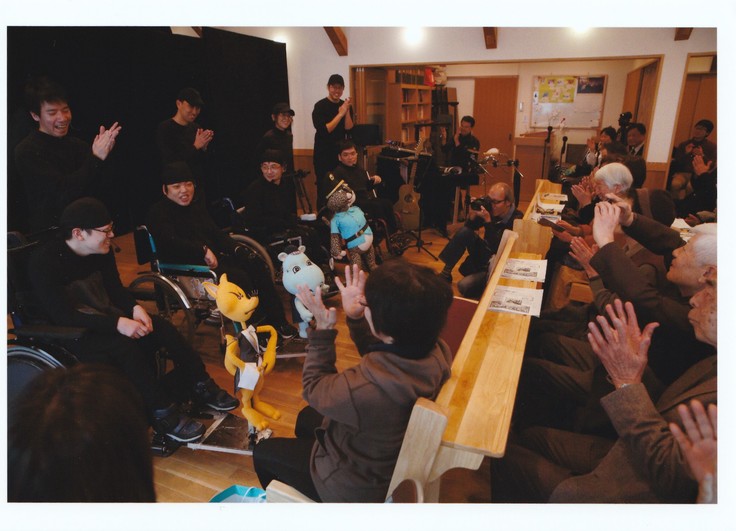 重度の障がいのある方々が中心となって1996年に結成。2003年に日本初の演劇スタイルを持つ「人形劇を活動内容とする肢体不自由障害者の作業所」となりました。2007年NPO愛実の会、生活介助型施設として活動してます。