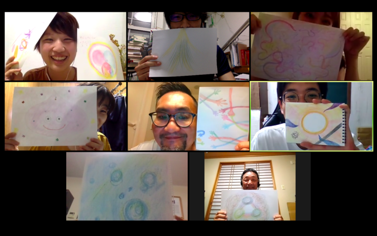 人それぞれ違った絵を描くことはもちろんですが、色々な共通項が浮かび上がってきました。他の人が描いた絵を眺めて、連想した出来事をシェアしてみると思いもしない共通項が見えてきます。