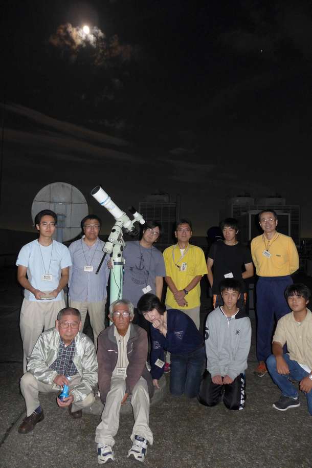 フルメンバーではありませんが、14歳から60歳代まで、いつもお世話になっているメンバーです。十三日目の月をバックに…。