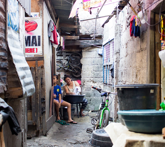スラム街はセブ島のリゾート地区とは離れた一般庶民が暮らすオールドタウンの至る所に点在しています。特にセブンスピリットの音楽教室がある港湾地区はセブの中でも最貧困の地区だと言われており、道路から一歩路地裏にはいると、トタン屋根と木材の寄せ集めでできた家がひしめきあって地区が形成されています。