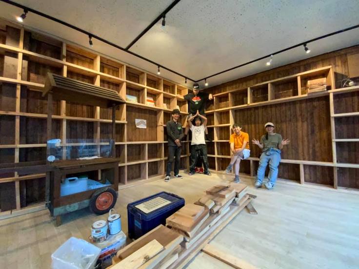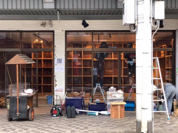 リノベーション・施工担当の流動商店さんの指導のもと、地域住民の方と一緒にDIYをしています。day4はひたすら本棚を磨いていく作業。加えて、ライトレールも設置し、本棚に素敵な照明があたるようになりました。第1期工事はこれで終了です。第2期は10月6日から10日の日中に行っています。よければお越しください。