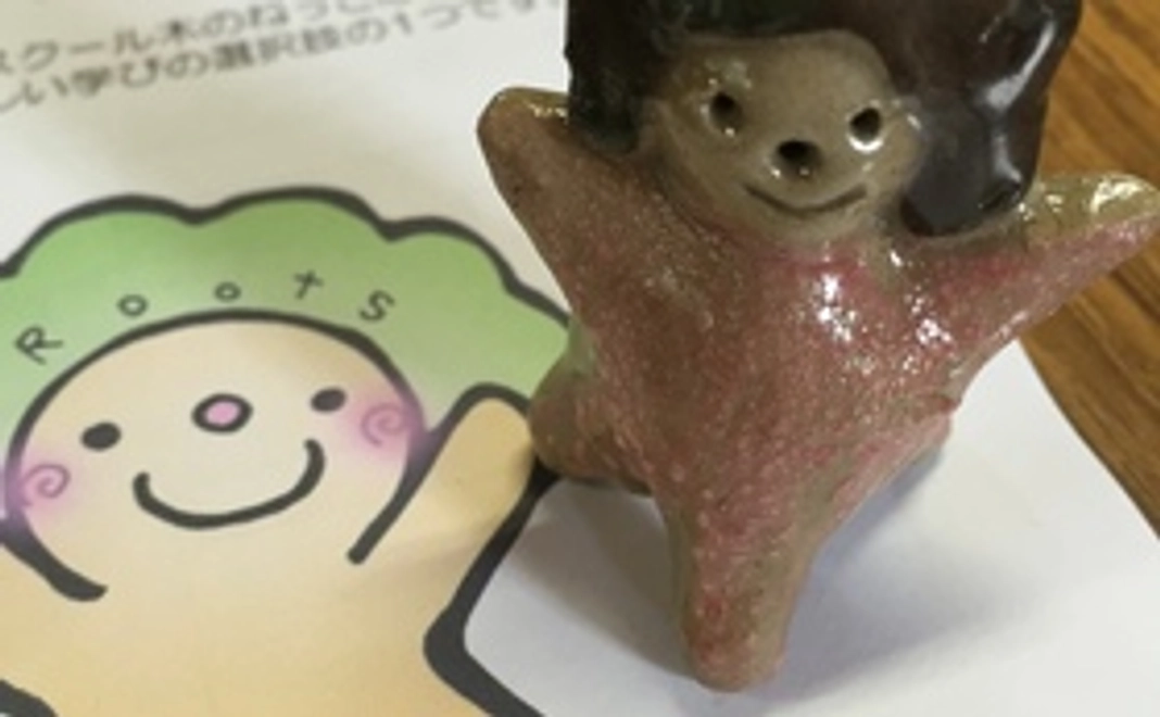 手びねり陶芸作品の手のひらサイズのルーツ君です。