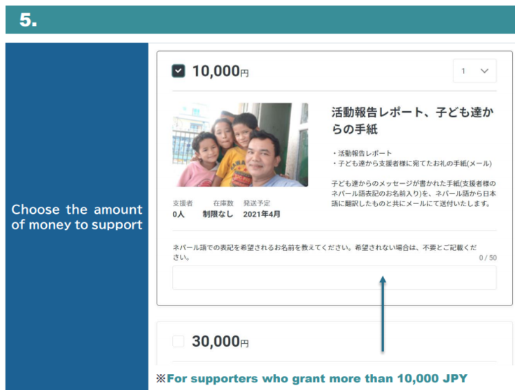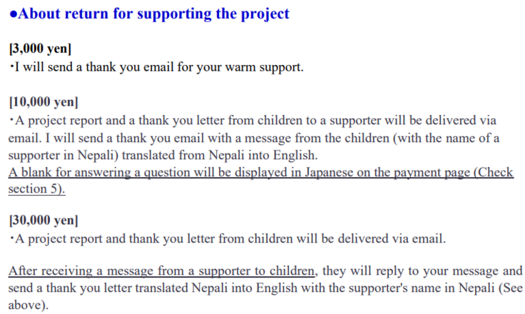 子ども達からのメッセージが書かれた手紙(支援者様のネパール語表記のお名前入り)を、ネパール語から日本語に翻訳したものと共にメールにて送付いたします。
