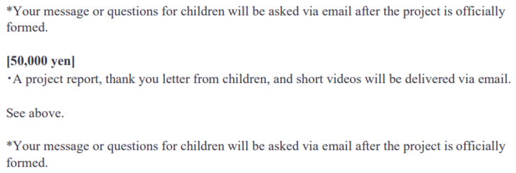 ・子ども達から支援者様に宛てたお礼の手紙(メール)