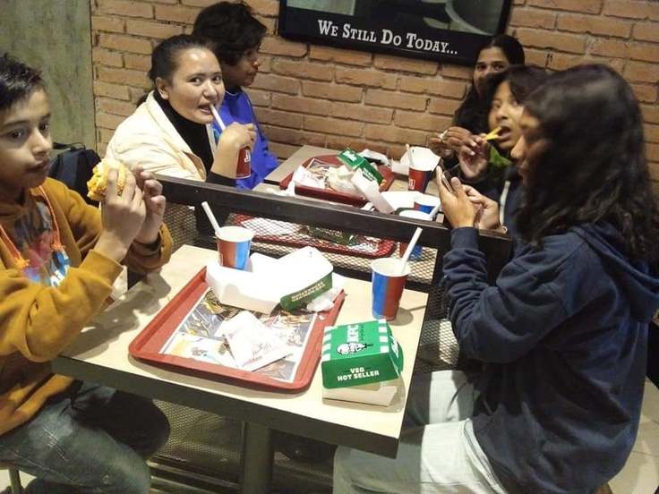 孤児院の施設スタッフの知り合いがハンバーガー店を経営しているため、この日は無料でハンバーガーを食べることができたそうです。